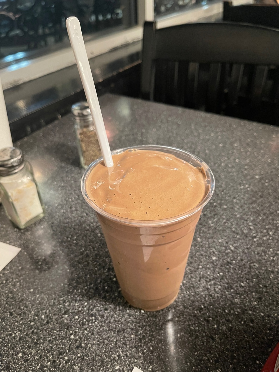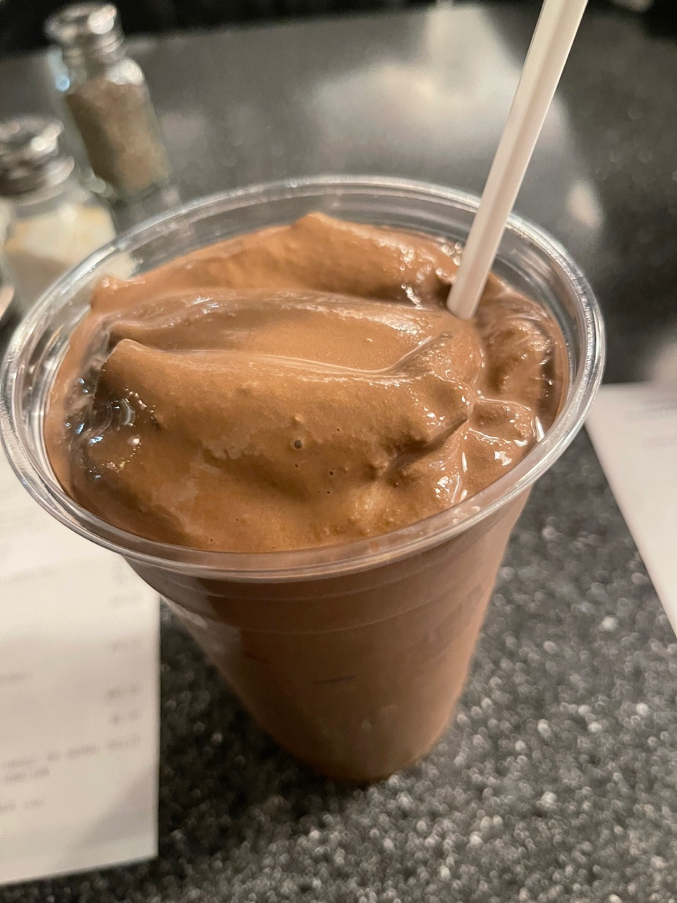 바나나 초코 셰이크와, 베이컨 치즈 버거입니다. 초코가 들어간 셰이크라 다 똑같이 생겼다는 점 ㅋㅋㅋ